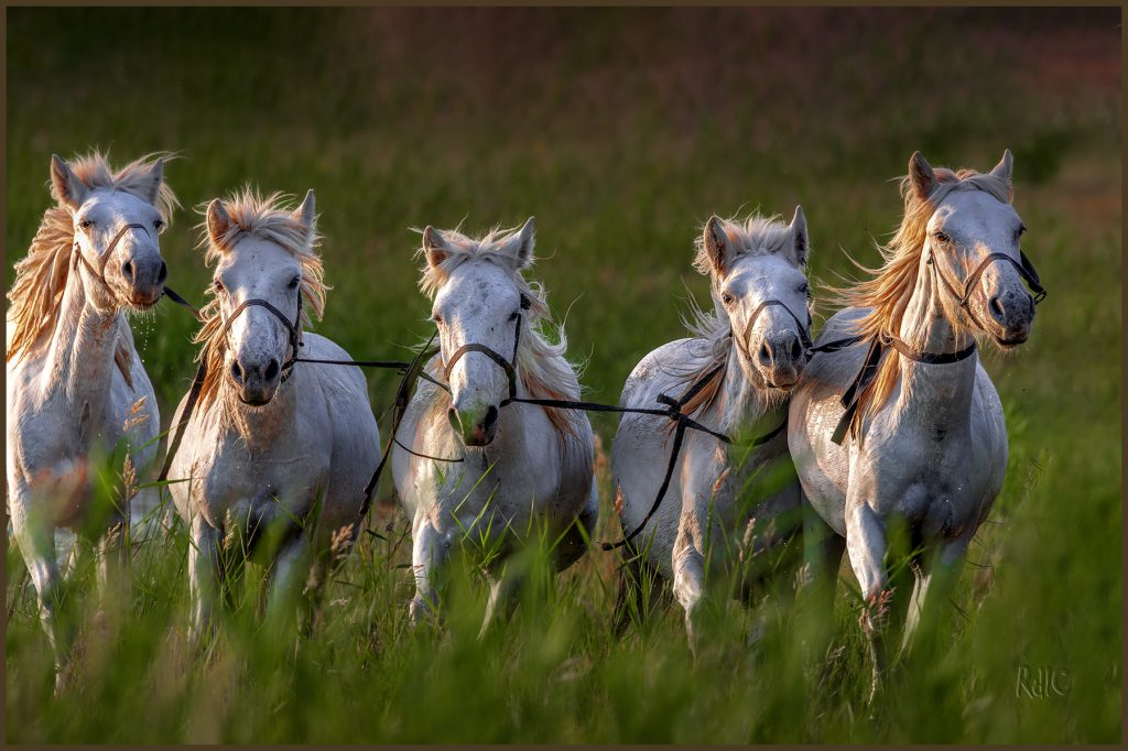Recuerdo que estaba preocupado. Demasiados parámetros que no podía controlar. Sabía lo que quería plasmar, pero necesitaba que los caballos entraran en el ángulo correcto para que sus cabezas expresaran toda la fuerza de su carácter. El sol caía y quedaba muy poco tiempo para que la luz dorada que se reflejaba en sus crines se esfumara. Además, galopaban, con lo que tenía que mantener la velocidad alta (1/2000) y no quería subir el ISO (la sensibilidad del sensor) demasiado. Ya estaba en 1000 y aún podía mantener un diafragma intermedio (7.1) para sacar al sensor lo mejor de él.